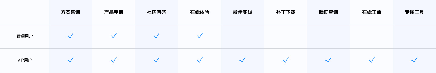 VIP服務(wù)是達(dá)夢數(shù)據(jù)在線服務(wù)平臺為特定用戶提供的專屬服務(wù),不僅可暢享基礎(chǔ)服務(wù)權(quán)益,更能通過VIP通道實(shí)現(xiàn)在線工單響應(yīng)、專屬知識庫、版本更新、漏洞說明、智能運(yùn)維工具等核心特權(quán),尊享原廠級技術(shù)護(hù)航新體驗(yàn)。